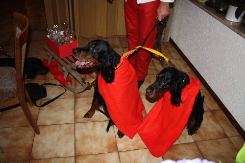 Wir sind alle erwachsen und wissen, den Weihnachtsmann gibt's ja gar nicht. Umso erstaunter waren wir, als dann doch Santa Claus um die Ecke bog ... samt seiner Rentiere. Oder sollte man sagen Santa Mathias samt seiner "Gordon-Rentiere". Die beiden Motten Fiftieth und Honeybee zogen den Schlitten!!!