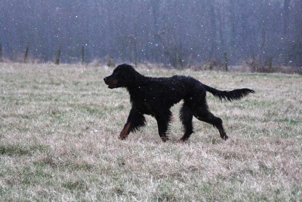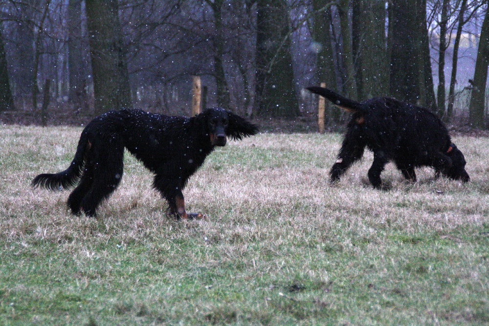 Mit dabei waren neben Susanne mit Jake, Uwe mit Bibo und Melanie mit Brigand auch Andreas mit Dusty und seine Frau Christiane mit Cocker Spaniel Balou. Und los ging's mit einem Slamlom.