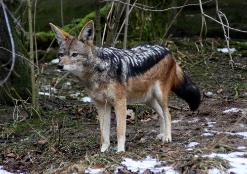 Unser Rundgang begann bei den Schabrakenschakalen. Ein Jungtier war vor Kurzem aufgenommen worden und lebte sich gerade erst ein. Wir erfuhren, dass Frau Erika Trumler die Forschungsarbeit ihres Mannes fortführte. Damit verbunden waren z.B. ganze Nächte in bzw. vor den Lagern der Tiere, um das Verhalten bei Nacht oder die Geburt von Jungtieren zu beobachten und auch zu filmen.