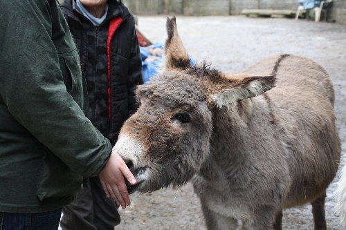 Anschließend brachen wir auf zu Forschungsstation Station Wolfswinkel. Wir waren neugierig auf diese "ursprünglicheren" und auch "wilderen?" Hunde als unsere Setter. Unsere Hunde blieben brav im Auto, während wir mit Entzücken feststellen durften, dass die Witwe von Eberhard Trumler uns persönlich durch ihre Forschungsstation führen würde. Dass uns neben Frau Trumler auch Esel auf dem Grundstück begrüßen würden ... damit hatten wir nicht gerechnet :o)