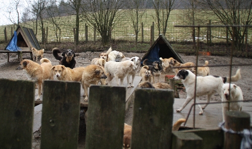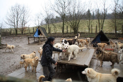 andere erinnerten eher an Hovawarts oder Leonberger. Interessant: 42 Hunde lebten hier auf relativ wenig Raum friedlich miteinander. Raufereien waren zwar auch an der Tagesordnung, aber nie mit ernsthaftem Ausgang, trotz der hohen Anzahl. Frau Trumler wies den Personen, die in dieses Gehege gehen wollten, einen festen Platz zu.