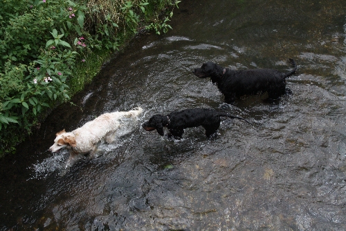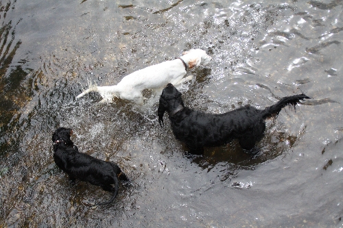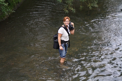 Nach einer knappen Stunde erreichten wir die Niers. Und die Hunde konnten endlich trinken und ihre Pfoten abkühlen. Den Fotowahn von Susanne konnte auch so ein läppischer Fluss nicht stoppen. Unerschrocken stürzte sie sich "in die Fluten" ;o)