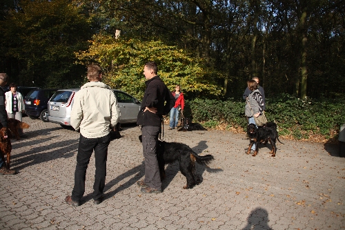 In einer bunten Besetzung und erfreulicherweise inklusive zweier Irish Setter trafen sich die RheinRuhrSetter bei schönstem Sonnenschein am Fuße der Halde Rheinpreußen bzw. am Baerler Busch, bereit zu neuen "Schandtaten" :o)