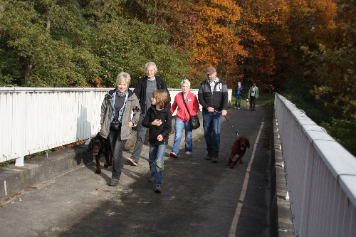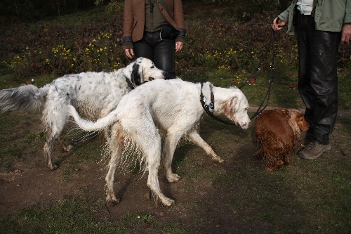 Gut gelaunt traten wir den Rückweg an und trafen wie auch beim Hinweg auf allerlei andere Hunde. Dieser Cocker war besonders neugierig. Als Connor und Finlay sich jedoch umdrehten um "zurück zu schnüffeln", trat er schnell den Rückzug an: "Fraucheeeeheeeen, Setteralaram! Ganz viele von der Sorte!!!"