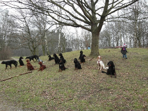 Viele Menschen - viele Hunde = viel Gequatsche + viel Gerenne. Ab und zu haben uns die Spaziergänger und Jogger, denen wir begegneten, wohl verflucht, denn unsere Setter achteten nicht wirklich darauf, wo sie sich schüttelten und wen sie beim Spielen stören könnten. Da steht für die Zukunft doch wohl ein reiner Leinenspaziergang und Benimmkurs auf dem Programm ;o)