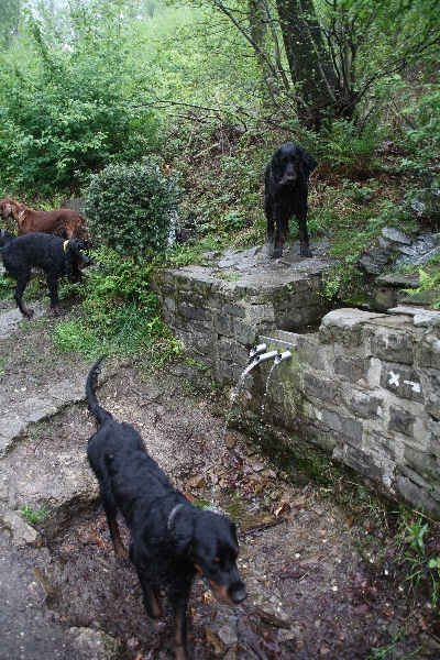 Trotz sowieso schon nassen Verhältnissen freuten sich unsere Hunde über eine kleine Wasserstelle, an der sie trinken konnten.