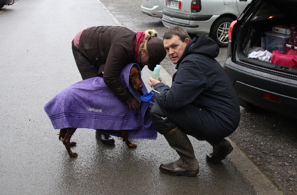 Wieder am Parkplatz angekommen wurden die Hunde erst einmal ordentlich abgerubbelt, wobei unsere Setter natürlich auch mit Handtuch dekoriert eine gute Figur machten :o)