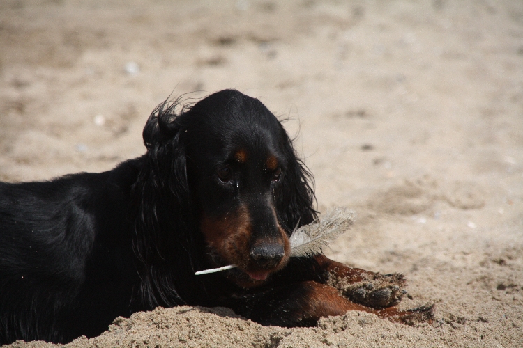 Mischung aus Gordon Setter und Irish Setter. Entgegen ihrer Geschwister ist vom Irish Setter