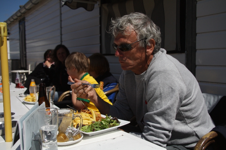 Während unsere Hunde erst einmal die Gelegenheit nutzten, Süßwasser zu trinken, rückten wir Tische zusammen und bestellten leckere Getränke und (einige) auch Speisen. Windgeschützt quatschten wir über unsere Hunde, Urlaub mit dem Hund, Alternativen mit dem Campingwagen/Wohnmobil und und und.