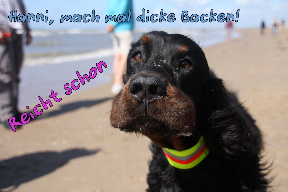 "Herrchen, ich kann dich gar nicht höööören. So viel Sand in den Oooooohren!"