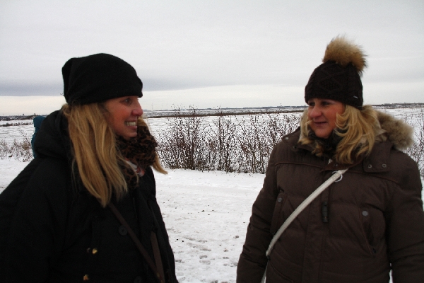 Auf dem Rückweg trafen wir auf einen schon leicht rampunierten Schneemann, woraufhin Sandra und Rocca zu einem kleinen Fotoshooting genötigt wurden.