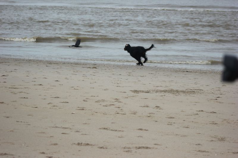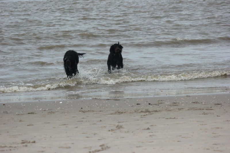Etwa 1 1/2 Stunden hatten unsere Hunde genot (Spaß) am Strand und rannten, plantschten, buddelten und spielten ohne, dass es sie irgendwie interessierte wie bewölkt es war und dass es zunächst doch stark nach Regen aussah.